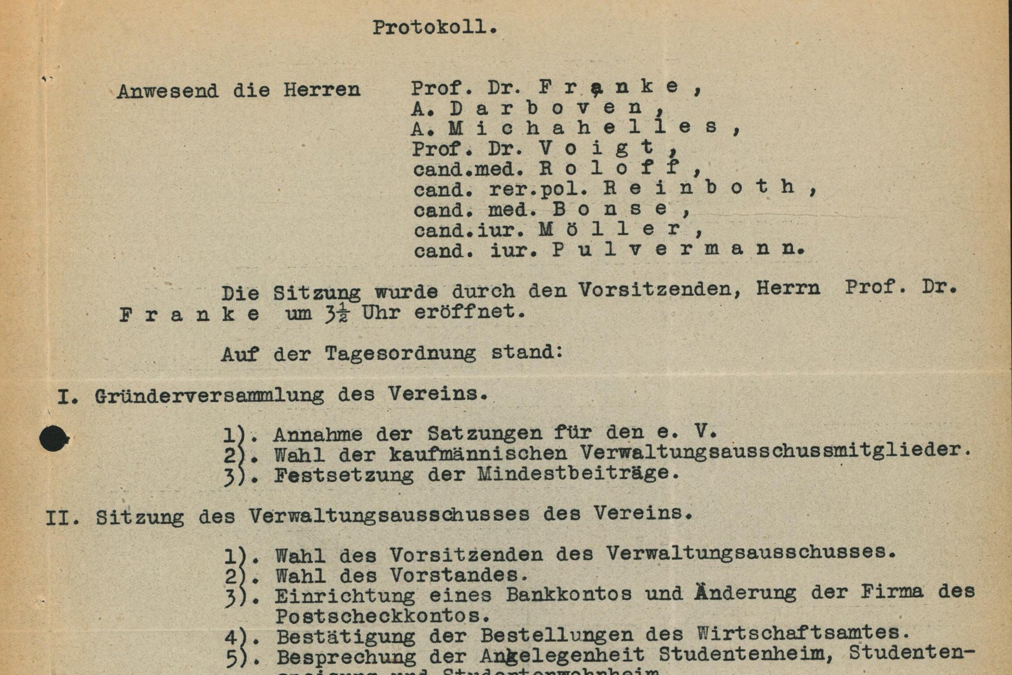 Beginn des Wiederaufbaus der Studentenhilfe. Professor Eisfeld wird damit beauftragt, einen Ausschuss „Studentenhilfe“ zu gründen.