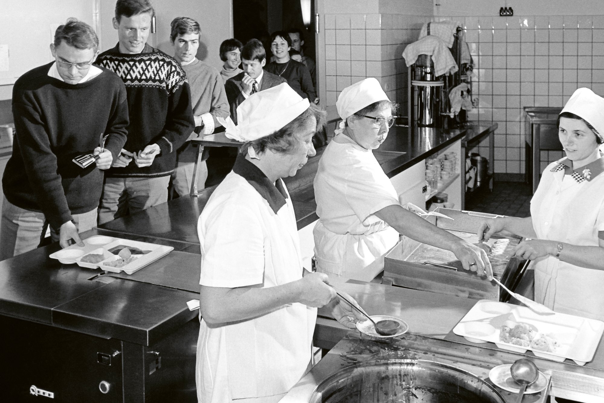 In den 50ern beginnt eine Entwicklung, die ab den 60ern Fahrt aufnimmt: Immer mehr junge Menschen strömen an die Universitäten. Der Zugang zu akademischer Bildung wird einfacher – vor allem für Frauen, aber auch für „Arbeiterkinder“. Die große Anzahl der Studierenden stellt das Studentenwerk vor hohe Herausforderungen. Mehr Mensa- und Wohnheimplätze werden nötig.