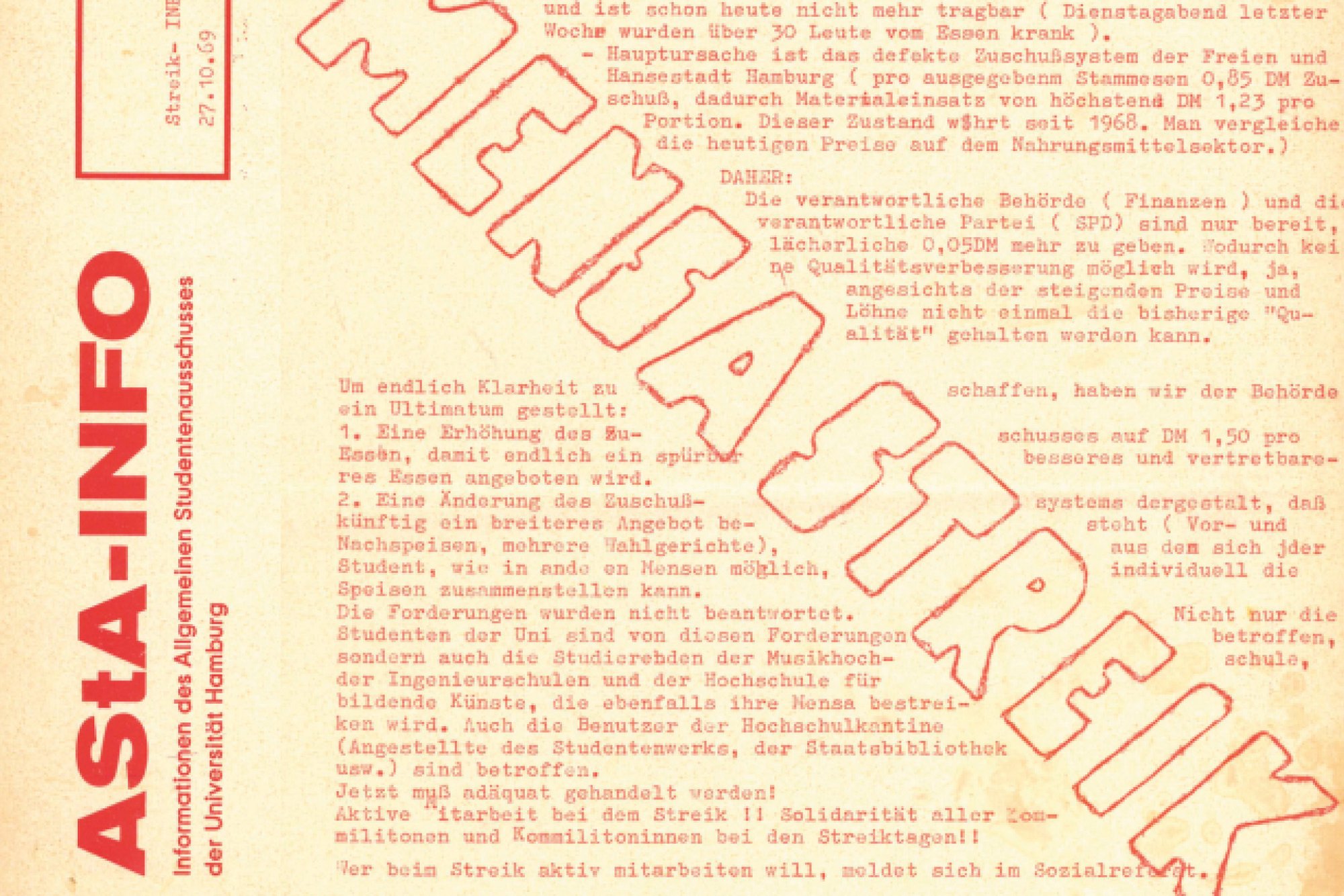Doch nicht nur das: Die Nachkriegsgeneration bringt neue Ideen und eine Menge kritischer Fragen mit. Die „68er-Bewegung“ erfasst die Bundesrepublik und auch die Universität Hamburg. Die Studierenden fordern u. a. mehr Mitspracherechte an den Universitäten. Neue Konzepte für die Selbstverwaltung der Universitäten müssen Hand in Hand gehen mit zeitgemäßen Ideen für Unterbringung, Versorgung und Finanzierung der neuen Studierendengeneration.