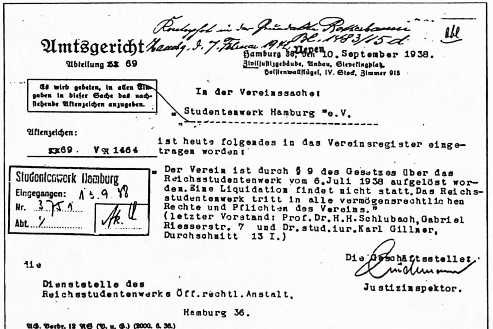Auflösung des Studentenwerks und Eingliederung in das Reichsstudentenwerk