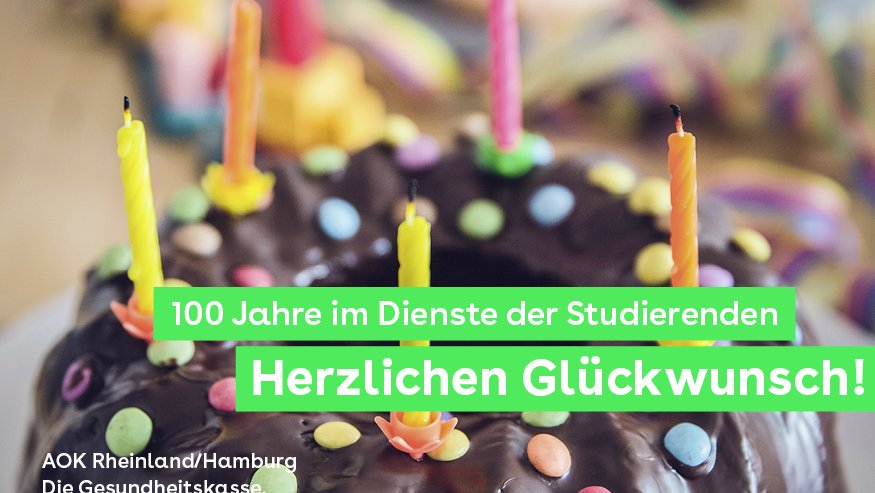 Moin liebes Team des Studierendenwerks Hamburg, wir wünschen euch alles Gute zum 100. Geburtstag und macht weiter so, wir freuen uns auf die weiterhin gute Zusammenarbeit. Liebe Grüße vom Team der AOK Studentengeschäftsstelle auf dem Campus
