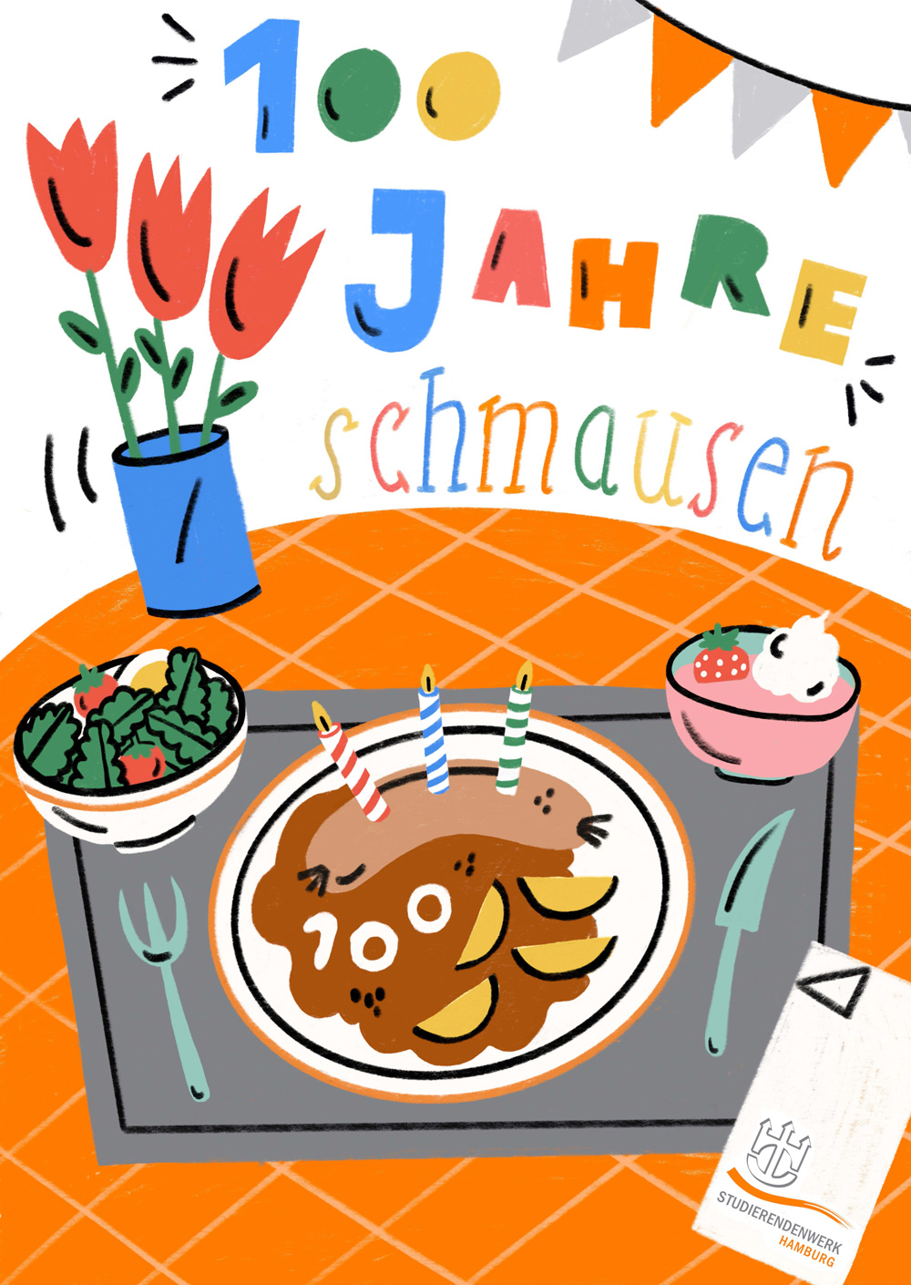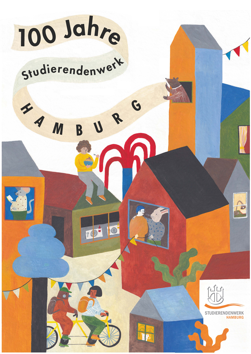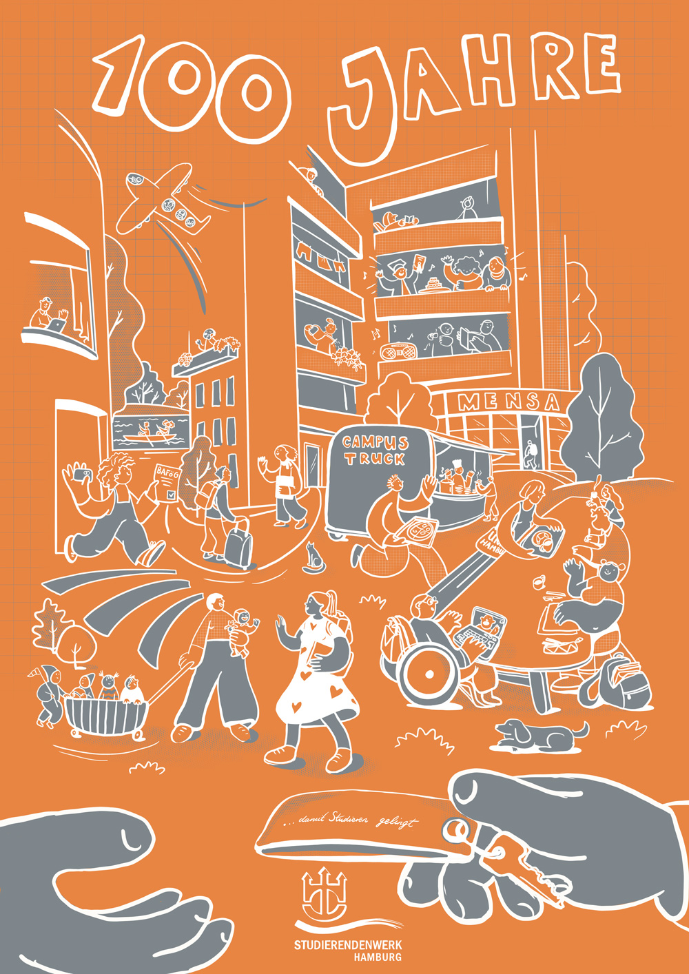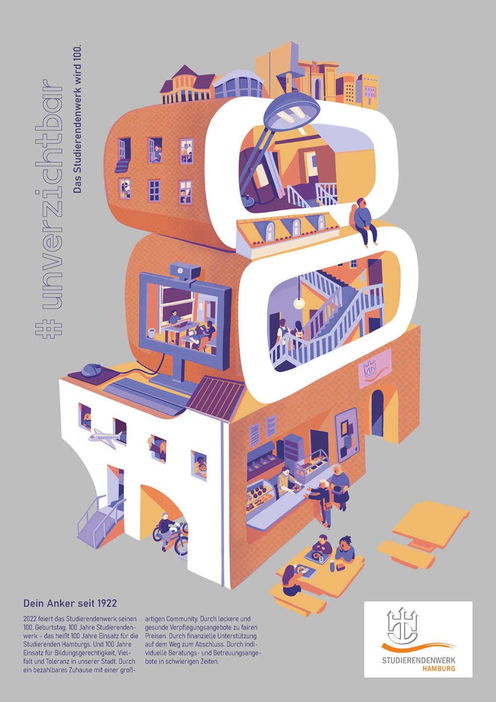 Anlässlich unseres 100-jährigen Jubiläums wollten wir wissen, was Hamburger Studierende bewegt und haben Illustrations- und Kommunikationsdesignstudierende der Hochschule für Angewandte Wissenschaften Hamburg (HAW) und der Hochschule für bildende Künste (HFBK) aufgerufen, Plakate mit ihren Ideen und Denkanstößen einzureichen.